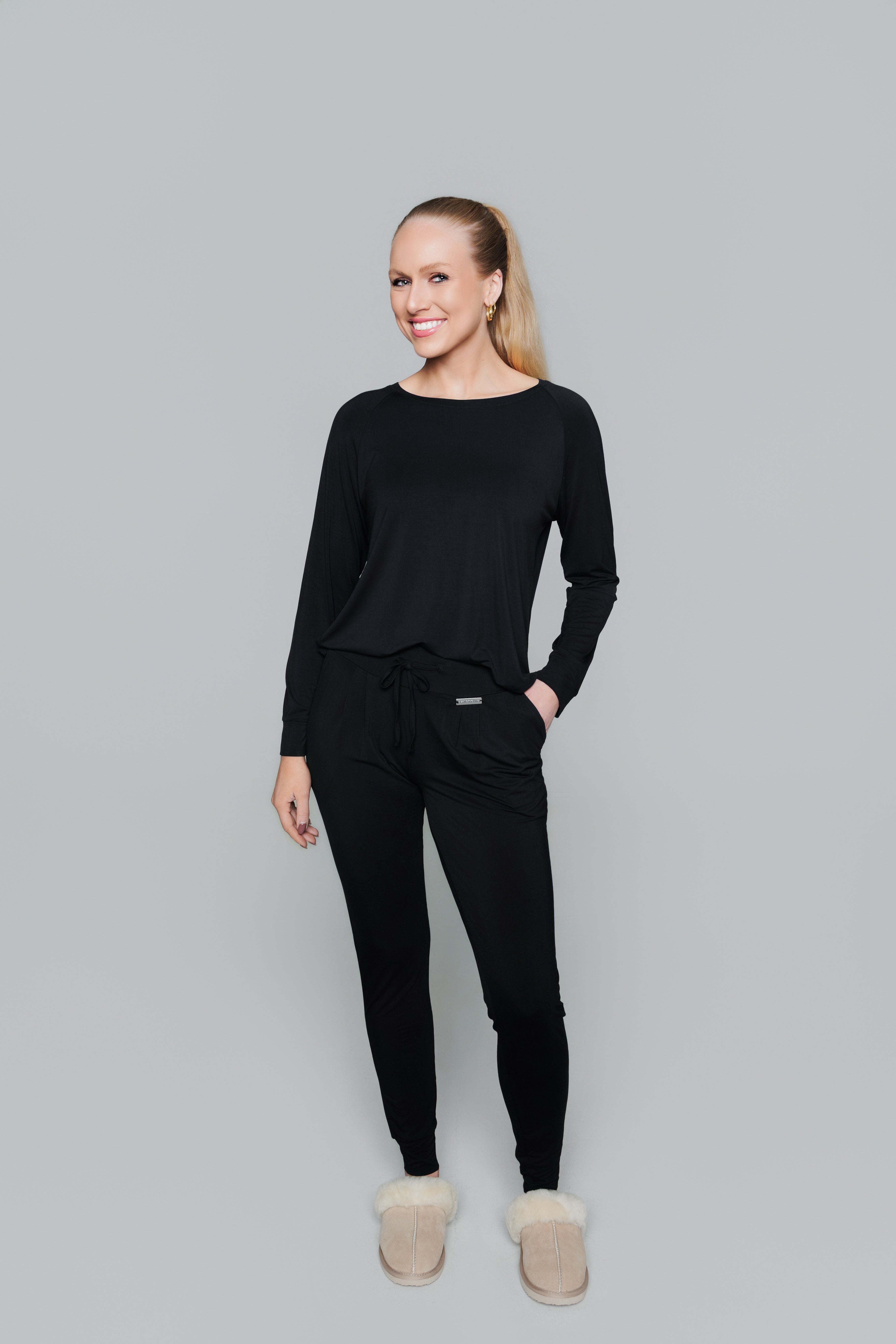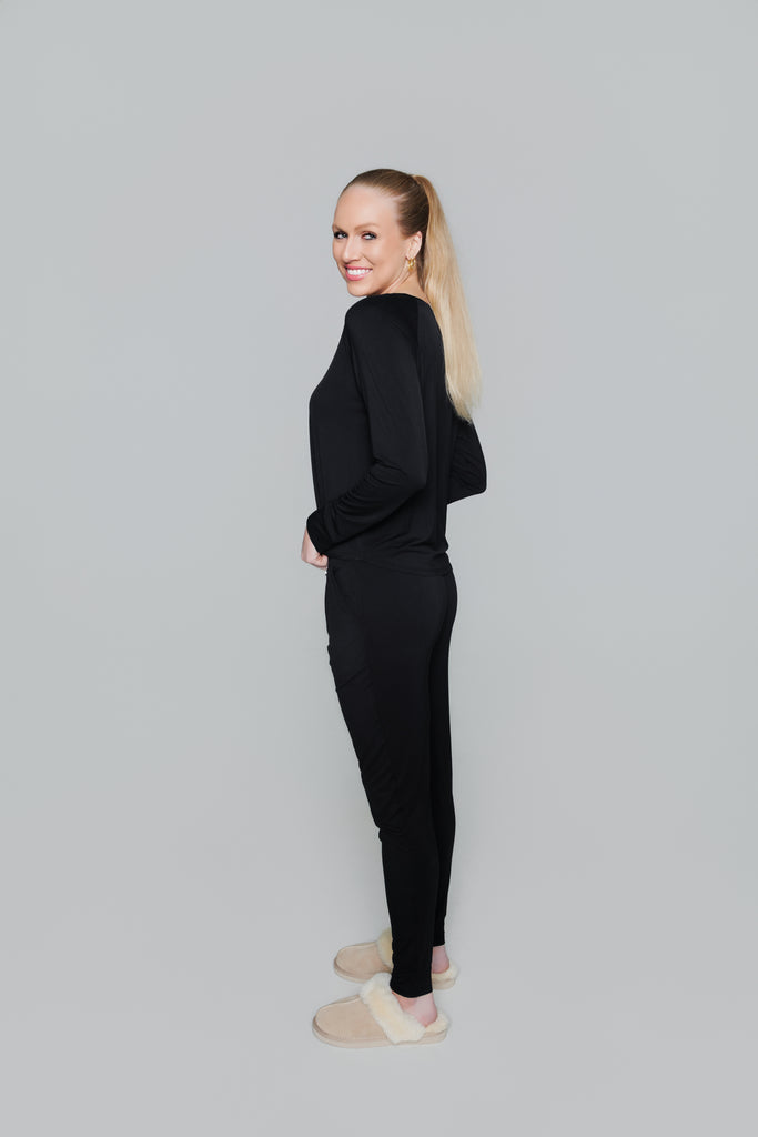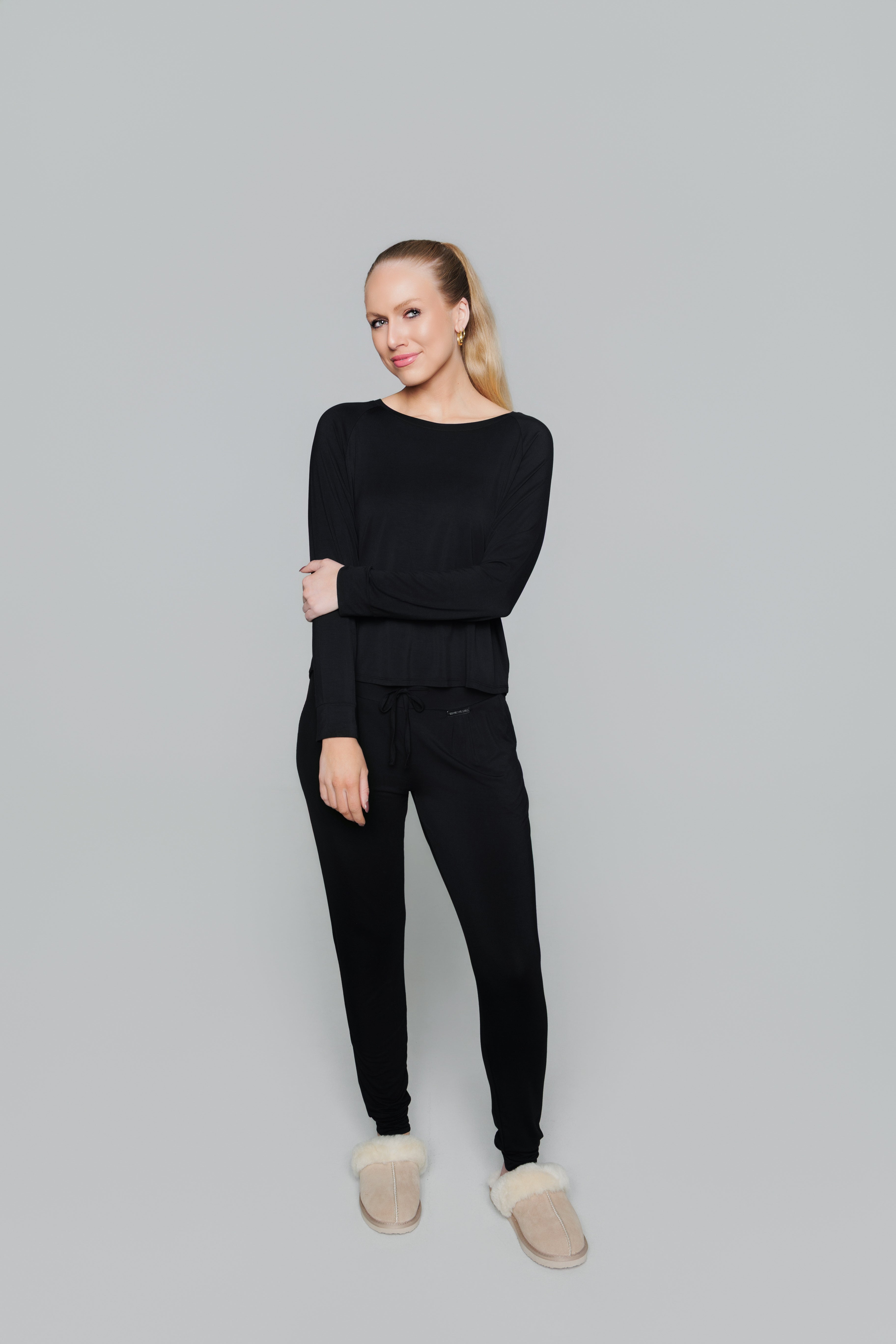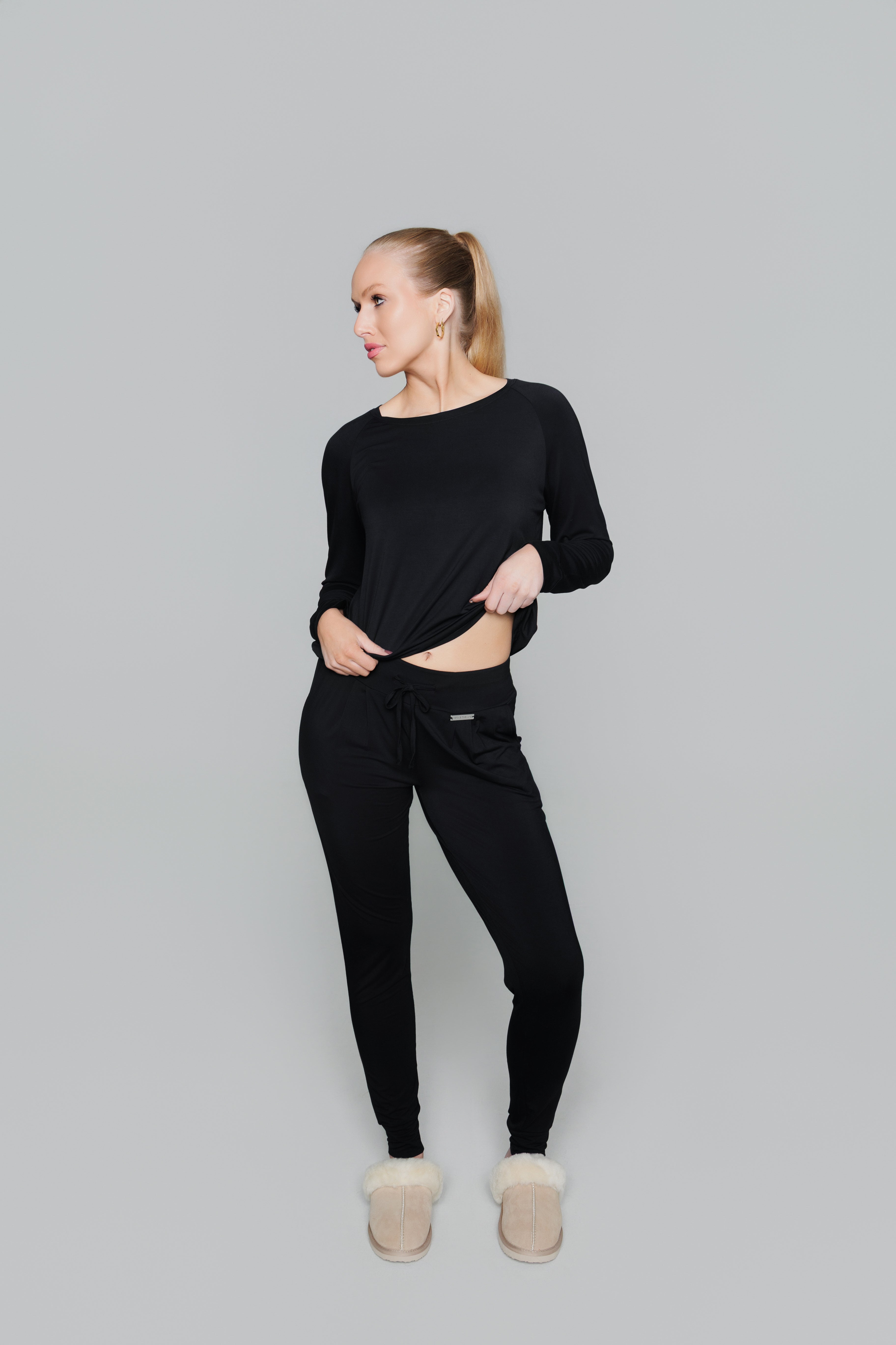 Unwind in pure comfort with our Bamboo Chill Set. It's made from ultra-soft, breathable bamboo fabric that feels like a gentle hug. Perfect for lazy mornings, movie nights, or just chilling at home. This set includes a relaxed long-sleeve top and matching pants. Once you put it on, you won’t want to take it off.