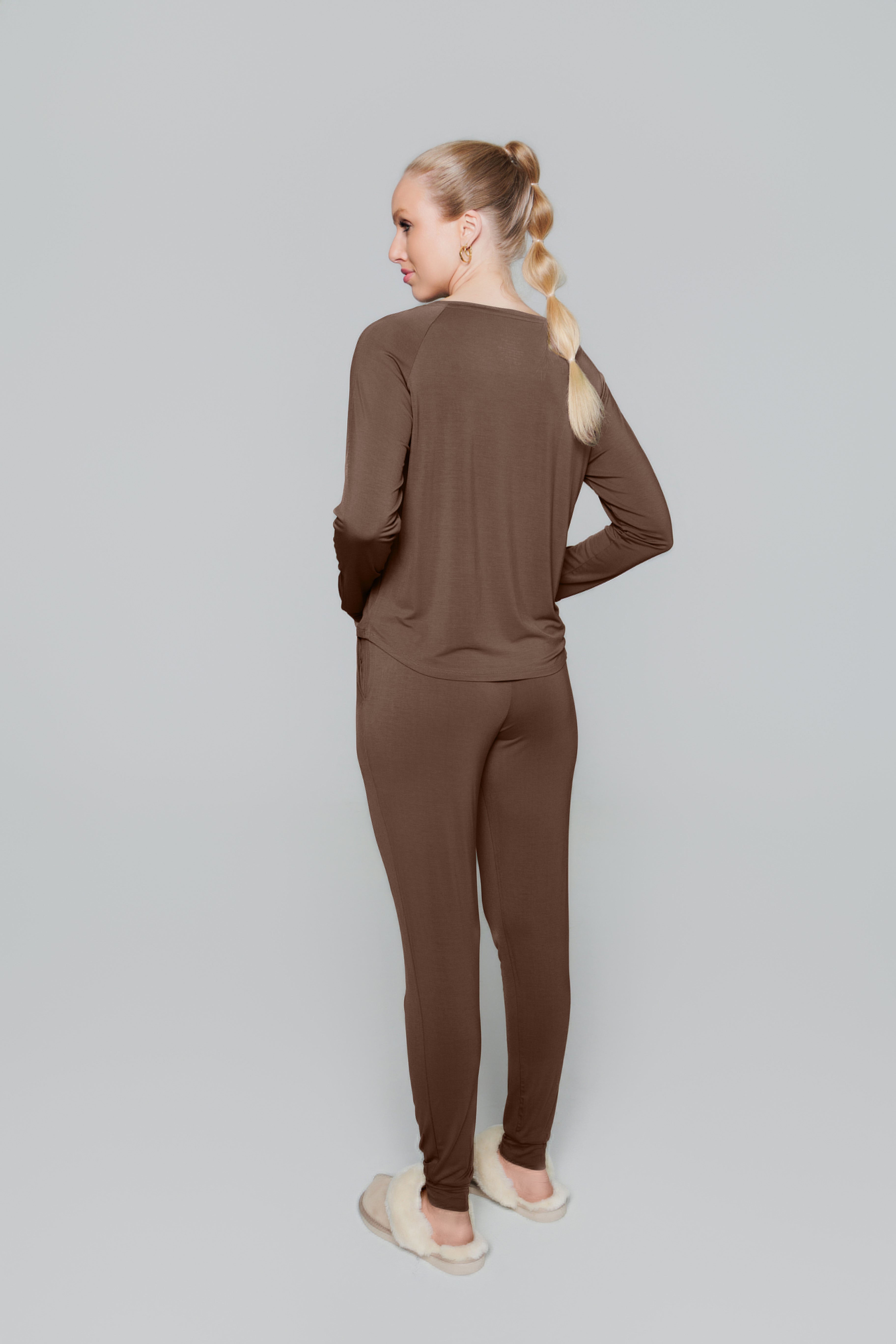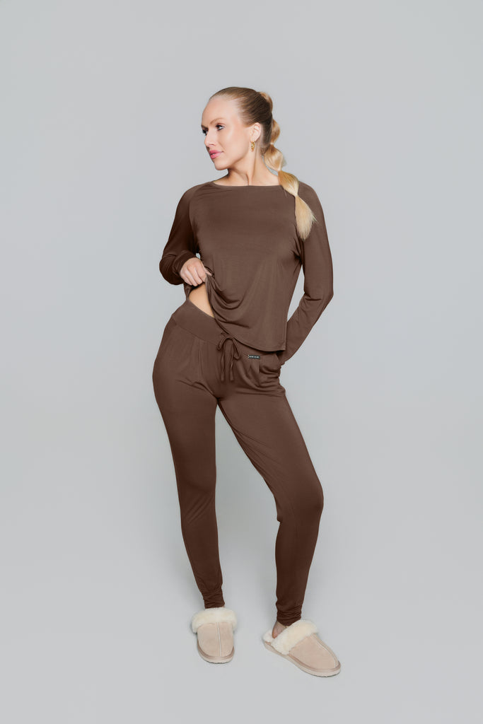 Unwind in pure comfort with our Bamboo Chill Set. It's made from ultra-soft, breathable bamboo fabric that feels like a gentle hug. Perfect for lazy mornings, movie nights, or just chilling at home. This set includes a relaxed long-sleeve top and matching pants. Once you put it on, you won’t want to take it off.